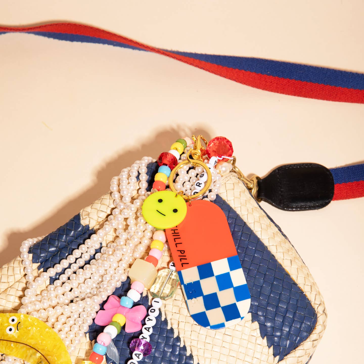 These glossy acetate charms measure approximately 9 cm x 9 cm and come with a clasp attachment, making them perfect for layering on bags, purses, or using as keychains.