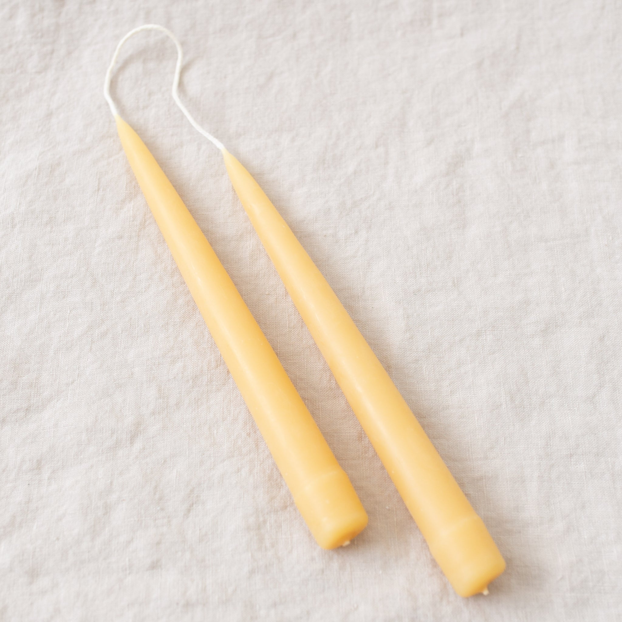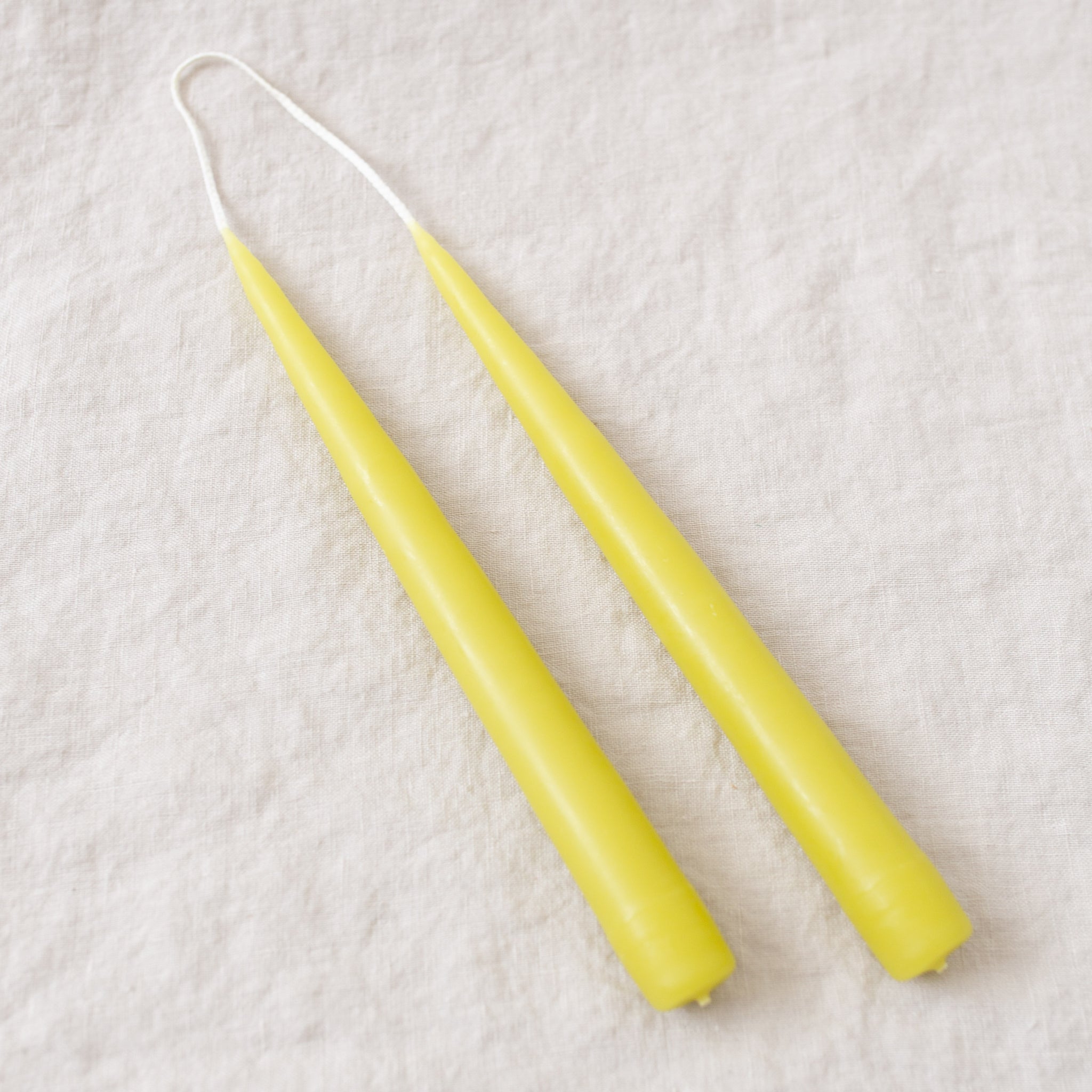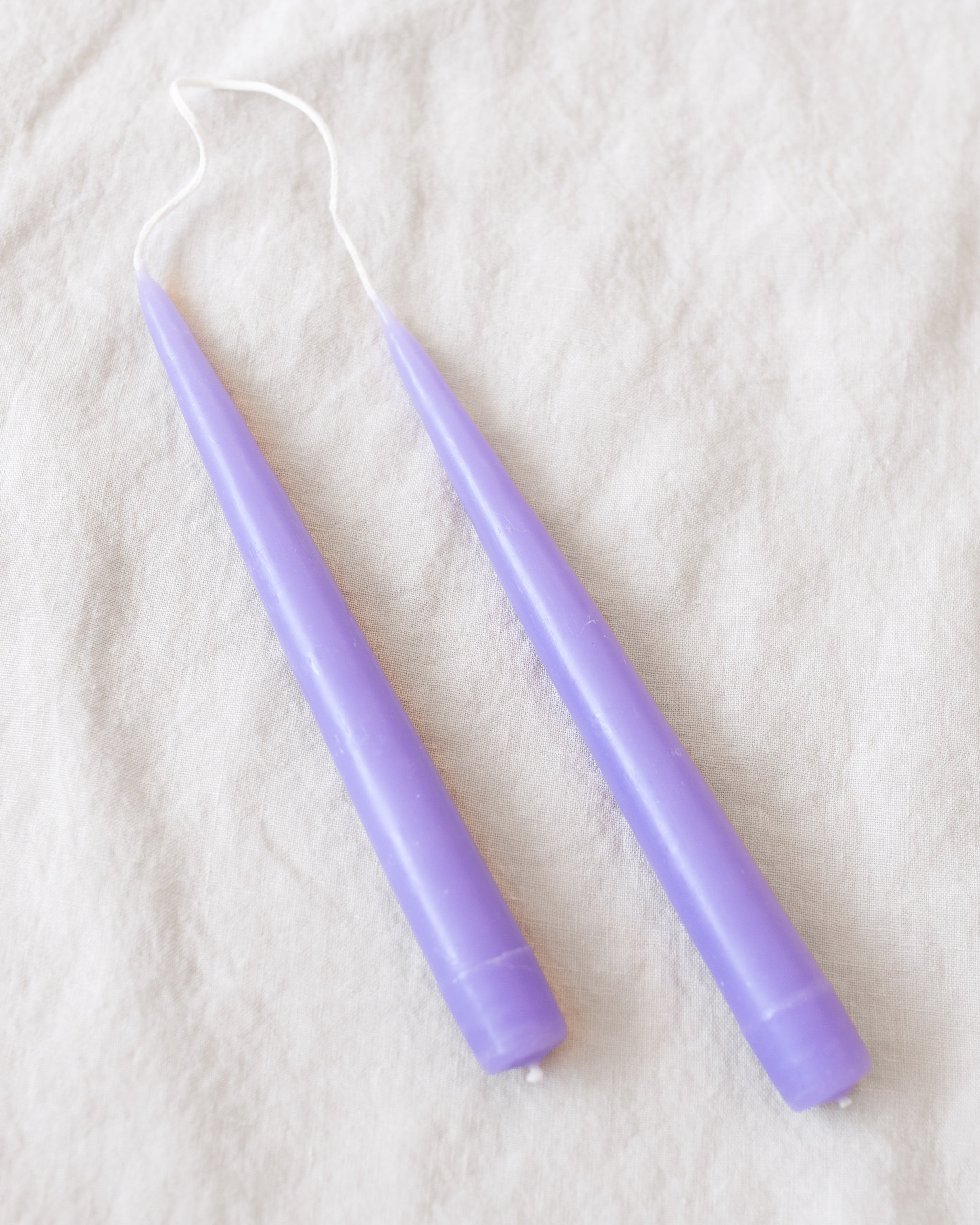 Hand-dipped taper candles crafted using a traditional Scandinavian technique passed down by family in Karlebo, Denmark.