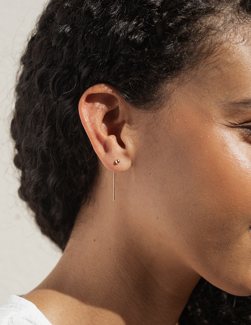 Sleek, minimal, and made to move with you — meet the Glide Threaders. These lightweight earrings feature a unique short chain, a stud, and a long, delicate threader post that glides effortlessly through the ear. The result is subtle shimmer in front and graceful movement behind, giving them a modern and playful vibe.