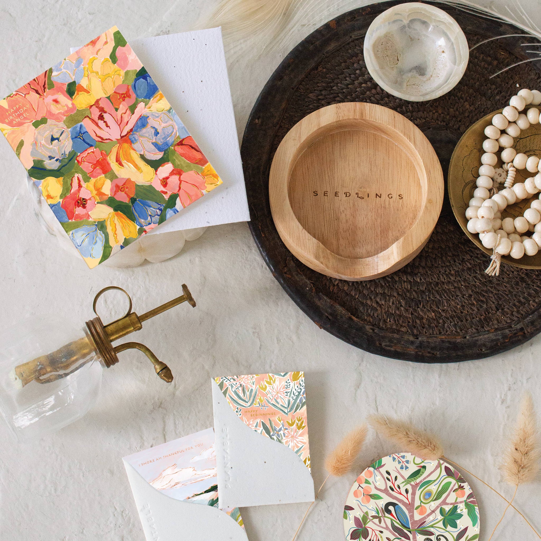 All Seedlings greeting cards have foil details and a PLANTABLE seed paper envelope which is embedded with wildflower seeds. This seed paper is made of a biodegradable eco-paper created with post-consumer materials - no trees harmed for this paper! When planted, our envelopes compost away leaving only flowers behind.