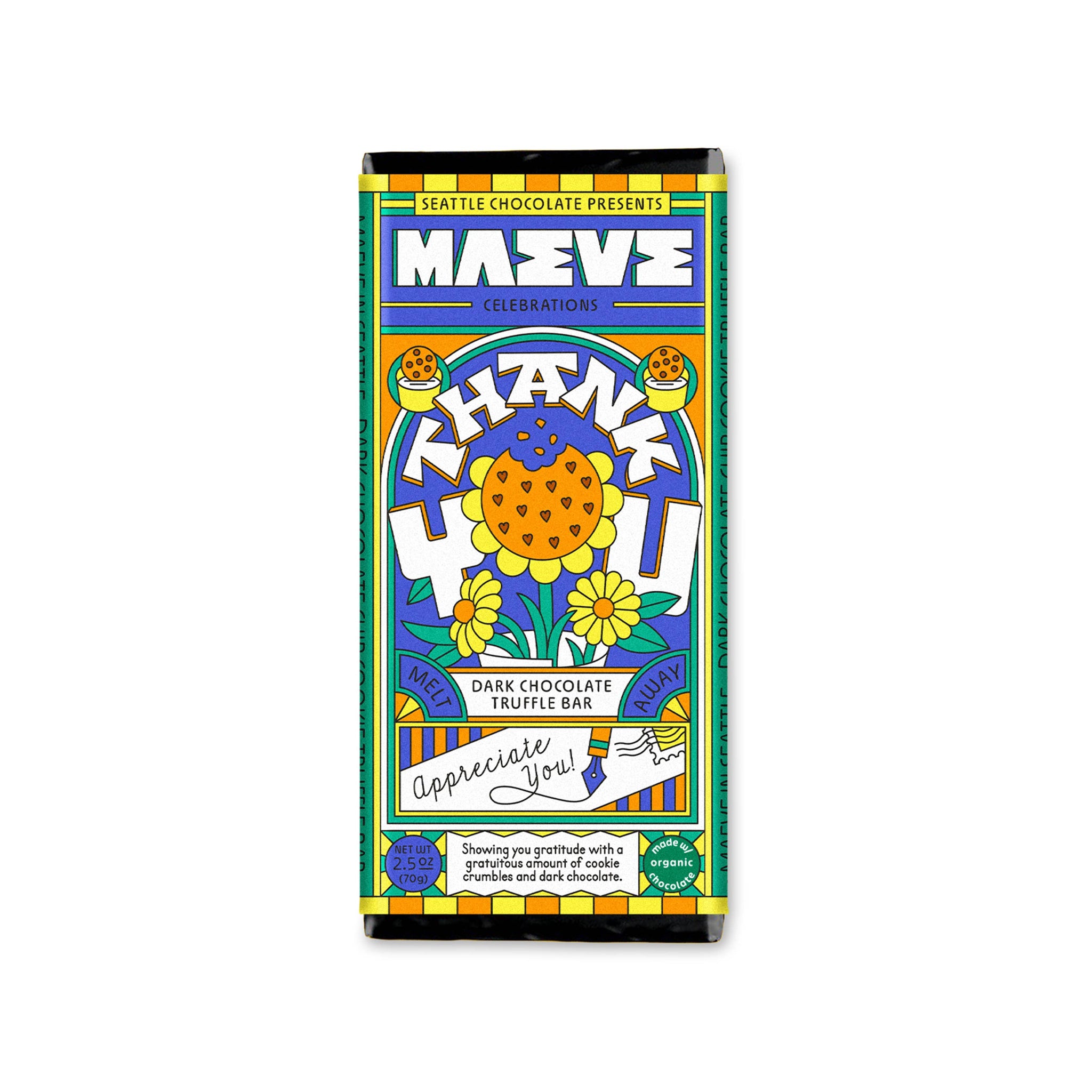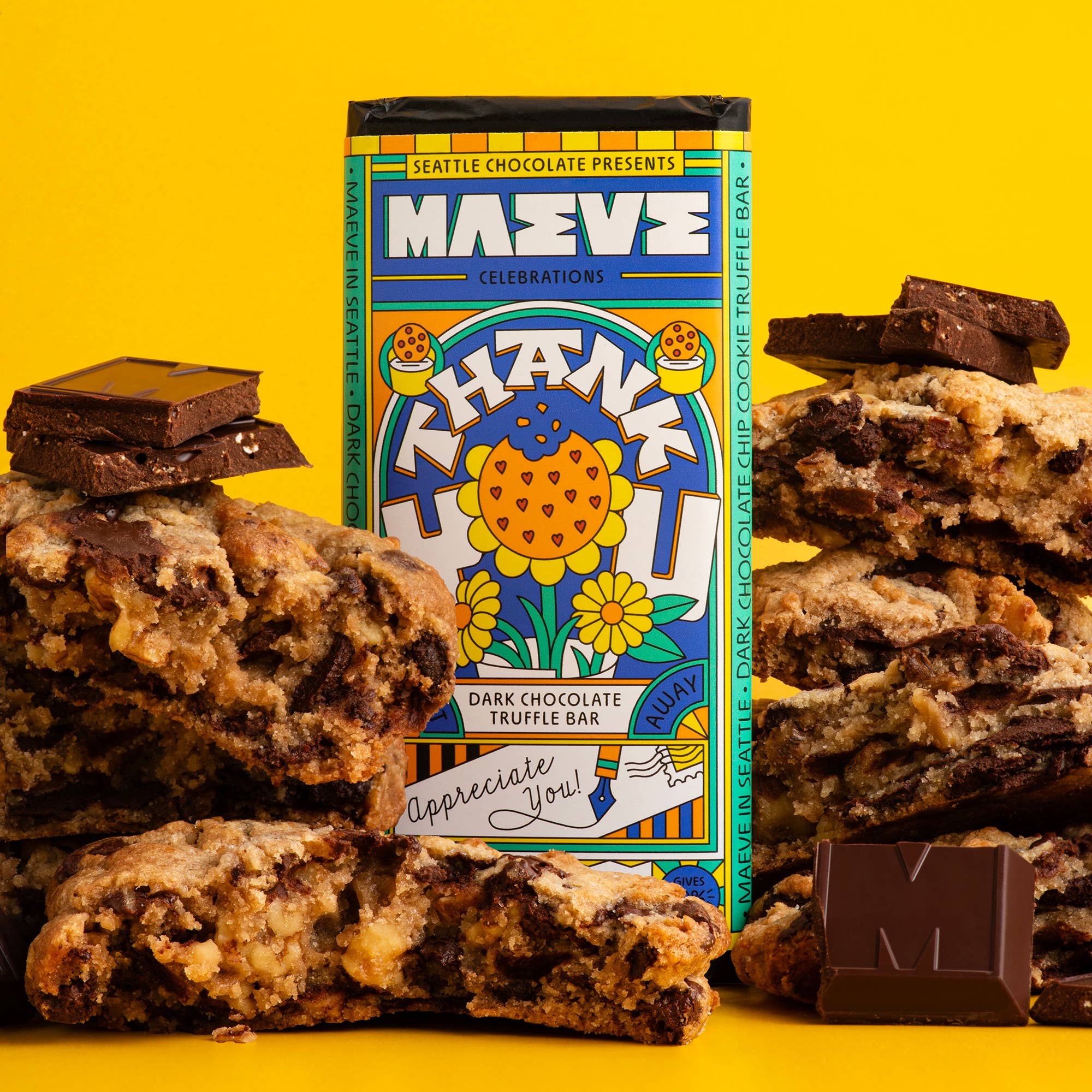 Indulge in Maeve’s Thank You Truffle Bar, a rich dark chocolate treat studded with mini crunchy chocolate chip cookie pieces for a playful, melt‑away experience full of gratitude. It’s the perfect way to show appreciation with a sweet twist.