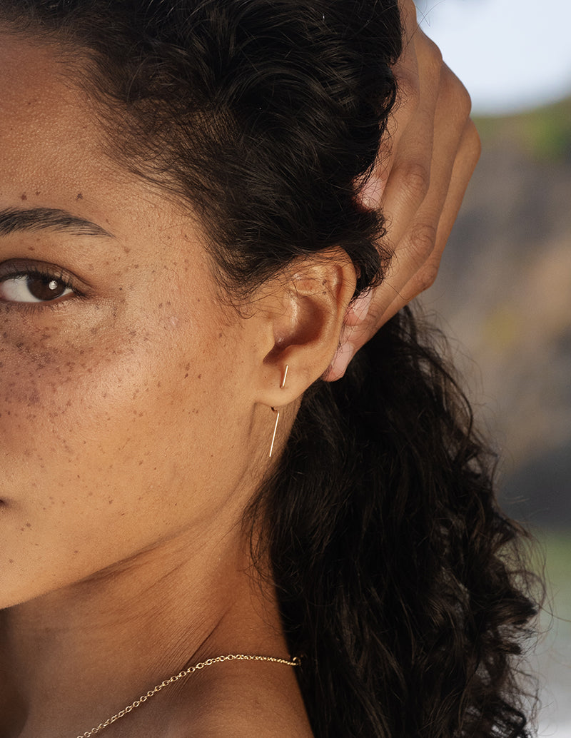 Minimal lines, maximum impact. The Sash Earring is a sleek, modern design that slips effortlessly through your ear, creating a clean bar on your lobe and a longer drop below. Its sculptural shape is both simple and striking, adding a touch of edge while staying lightweight and comfortable for everyday wear. Think of it as your go-to earring when you want something understated, but far from ordinary.