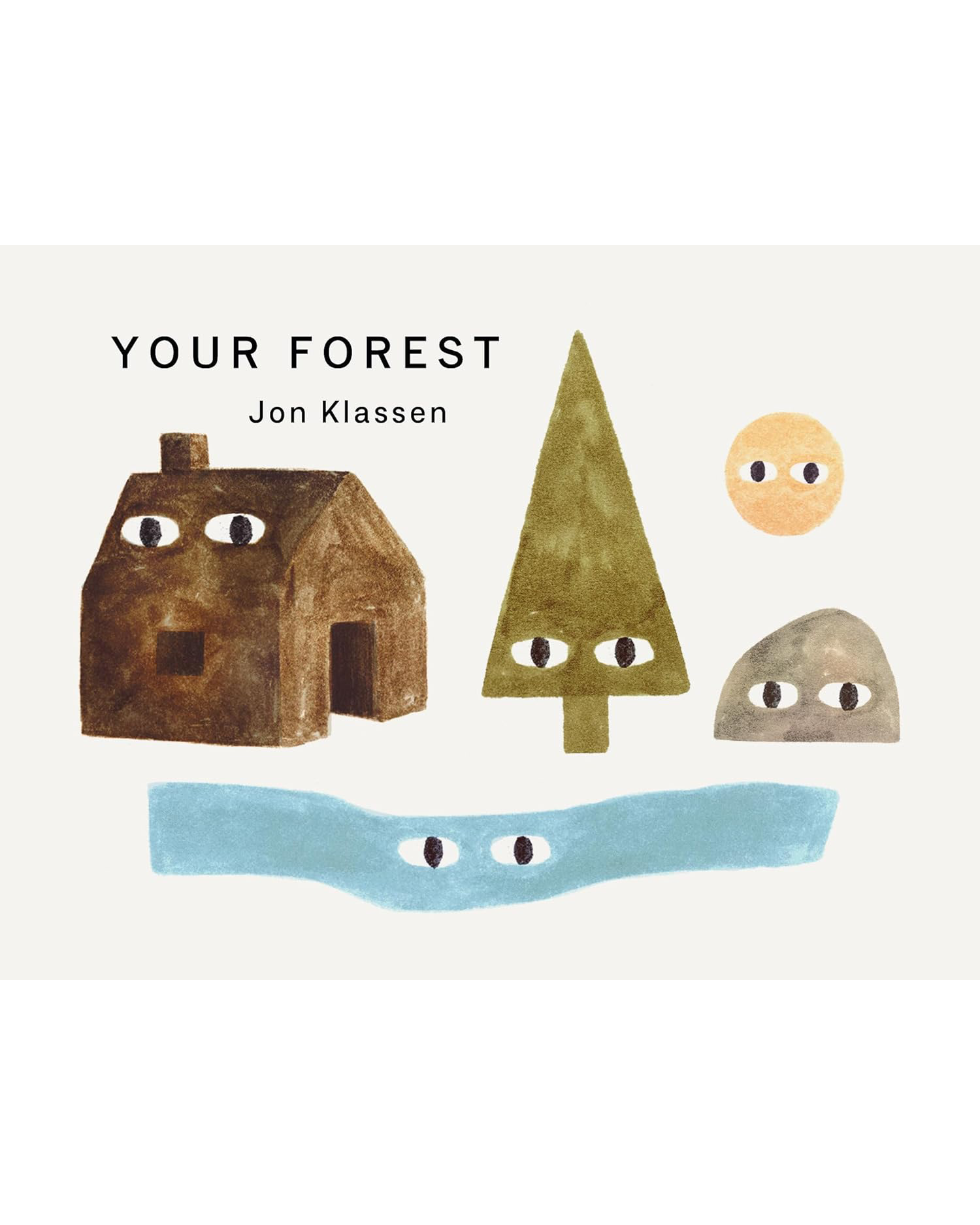 With a minimal tableau of familiar objects and a gentle rhythm suited for reading aloud, a forest and all its items—a cabin, some rocks, a (nice) forest ghost, a stream, a bridge—are assembled, ending with bedtime as the sun goes down. This is a forest for a young child to have whenever they want to go there. One of a trio of board books focusing on safe spaces, comfort, and imagination, Your Forest signals both a departure for Jon Klassen and a story whose peculiar touches of whimsy stamp the book as iconically his.