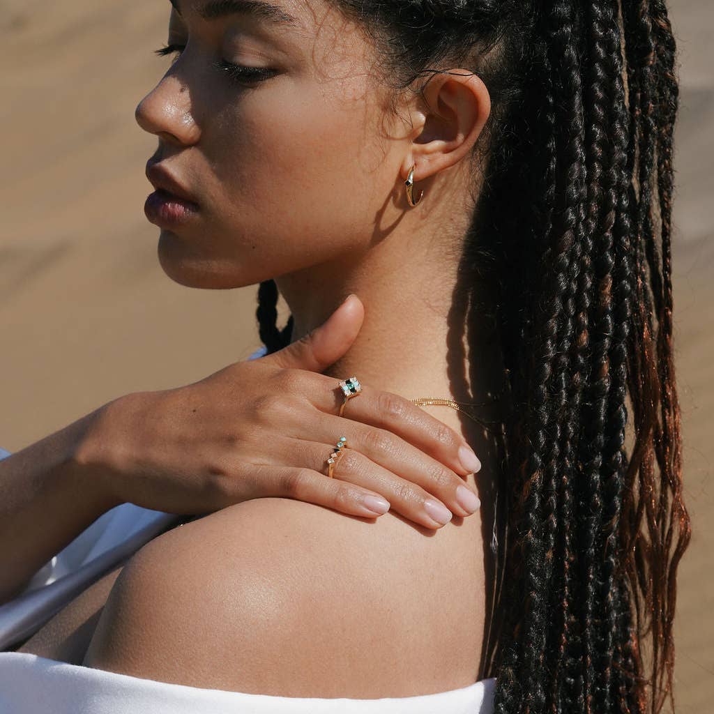 May cause harmless green discoloration due to natural skin reactions. Apply clear nail polish inside rings to create a barrier. Keep dry and remove before washing or applying products.