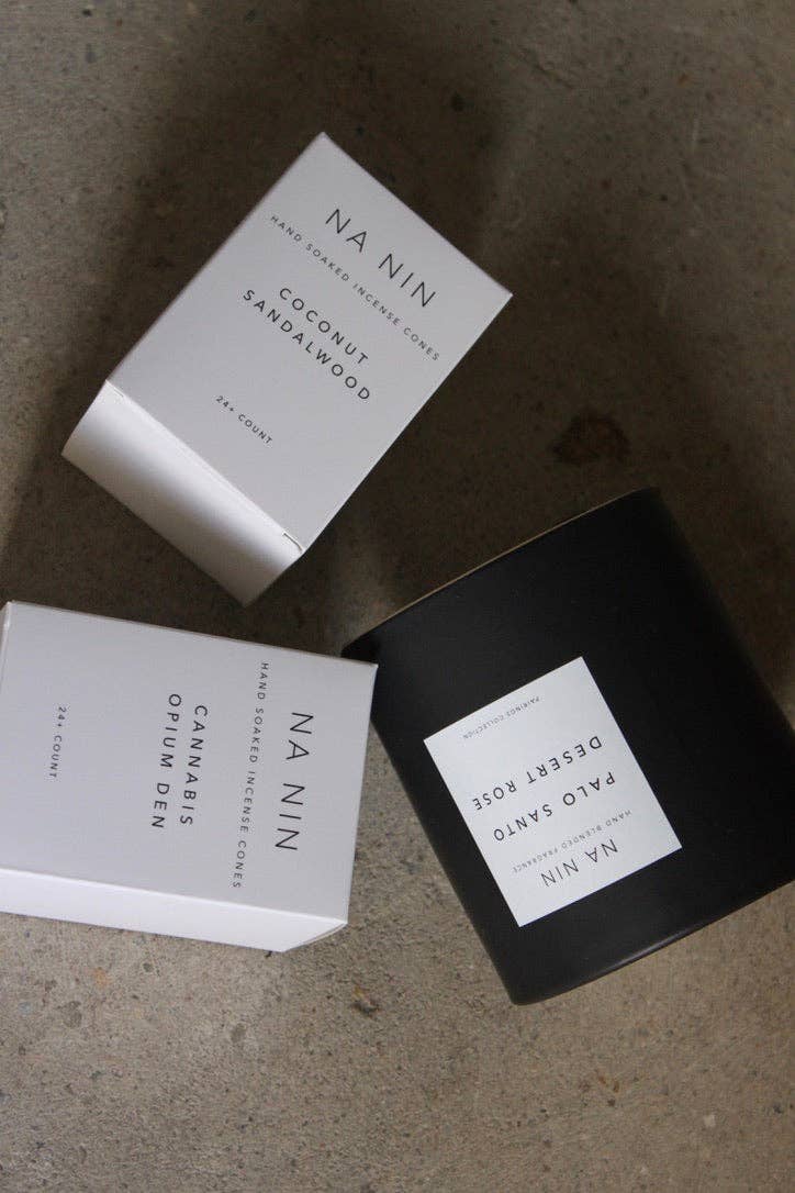 Coconut & Sandalwood is a warm, summery scent of sweet black coconut balanced with subtle sandalwood. Also available as a Candle and Reed Diffuser Each box includes approximately 24 1" incense cones. Made in Richmond, VA Bundle & save on this product and more in our SAVE WITH SETS collection. For an optimal burning experience, we recommend lighting the incense cone on a heat-proof surface and keeping the flame lit for about 45 sec to 1 minute, or until the flame has covered most of the cone’s surface. Then, carefully blow out the flame and enjoy the fragrance of the incense as is slowly disperses throughout your space. Each cone burns for approximately 15 minutes.