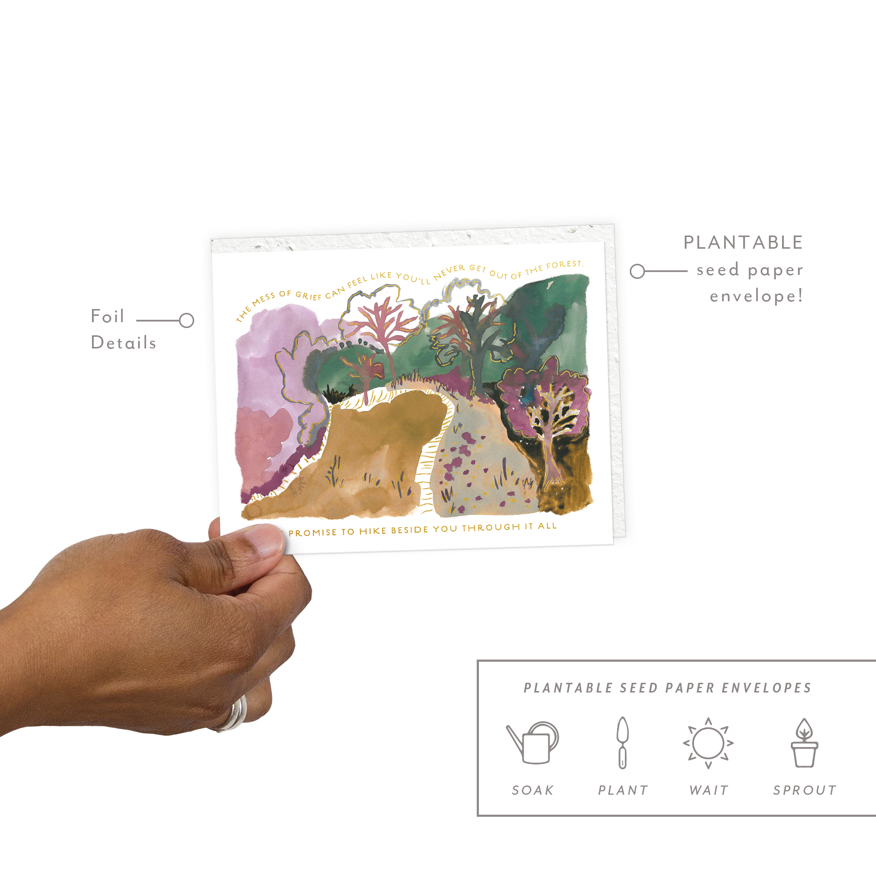 All Seedlings greeting cards have foil details and a PLANTABLE seed paper envelope which is embedded with wildflower seeds.