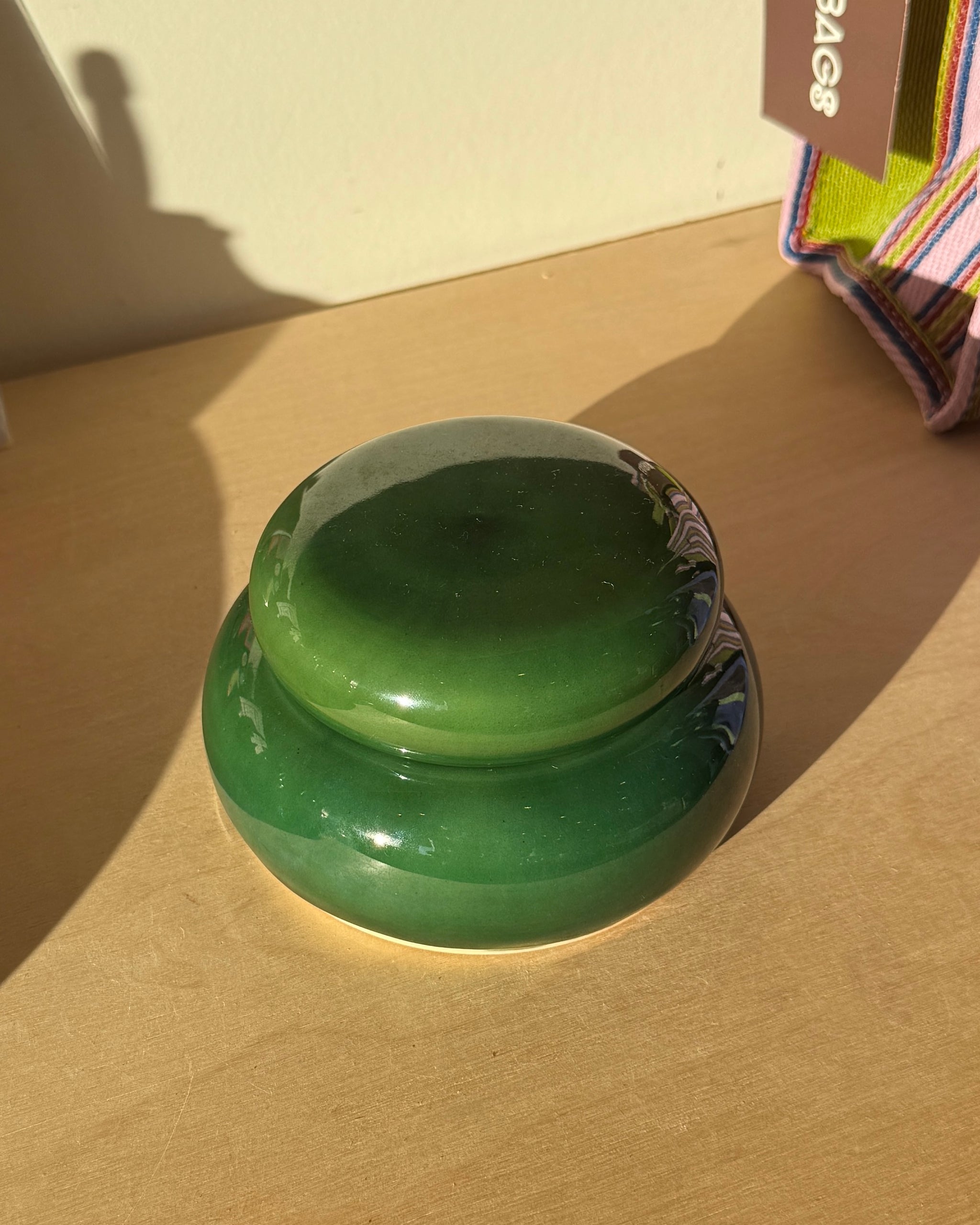 These lidded jars are both functional and sculptural. Fully glazed and food safe, these jars can be used as a salt/spice cellar or a place to catch small treasures.