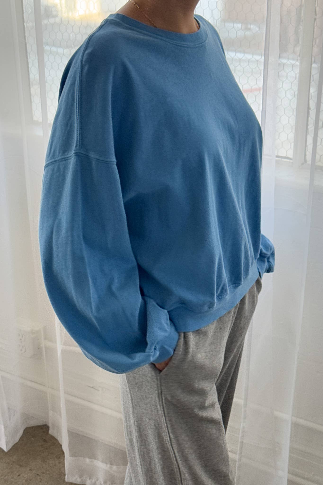 A fresh, elevated take on the classic crew. This sweatshirt blends elements of The Little Boy Tee and Poche Top, featuring relaxed balloon sleeves, a rib crew neckline, and a slightly oversized, cropped silhouette — perfect for easy layering or standalone wear.