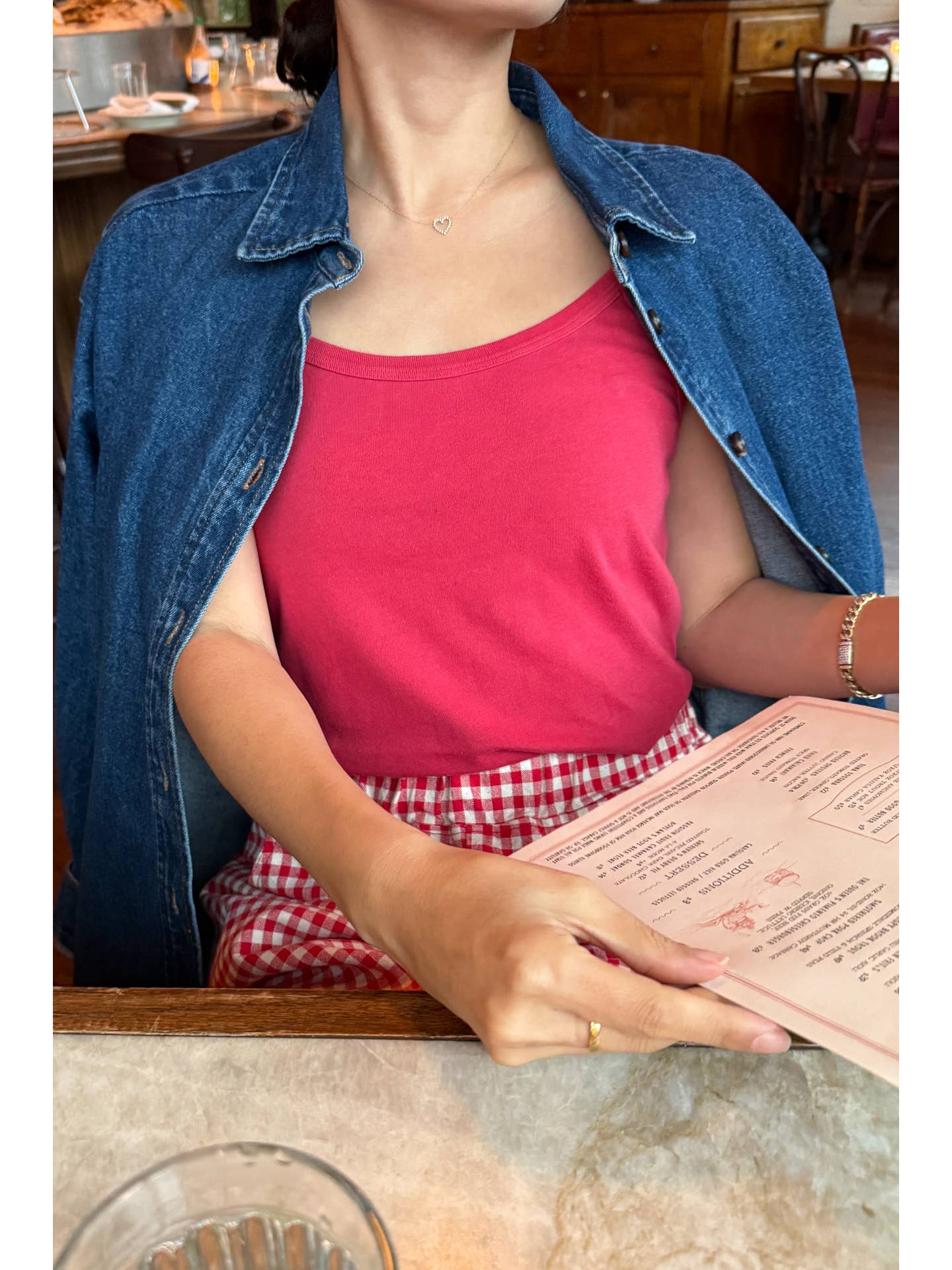 The Dana cami is a year‑round layering essential with a slim fit, curved neckline, and binding trim for a secure, classic look. Lightweight with a soft, lived‑in feel, each piece is uniquely pigment‑dyed and washed for subtle color and fit variations—making every garment slightly one‑of‑a‑kind. Crafted from breathable organic cotton, it layers effortlessly under jackets, sweaters, or worn solo for a clean, minimalist silhouette.