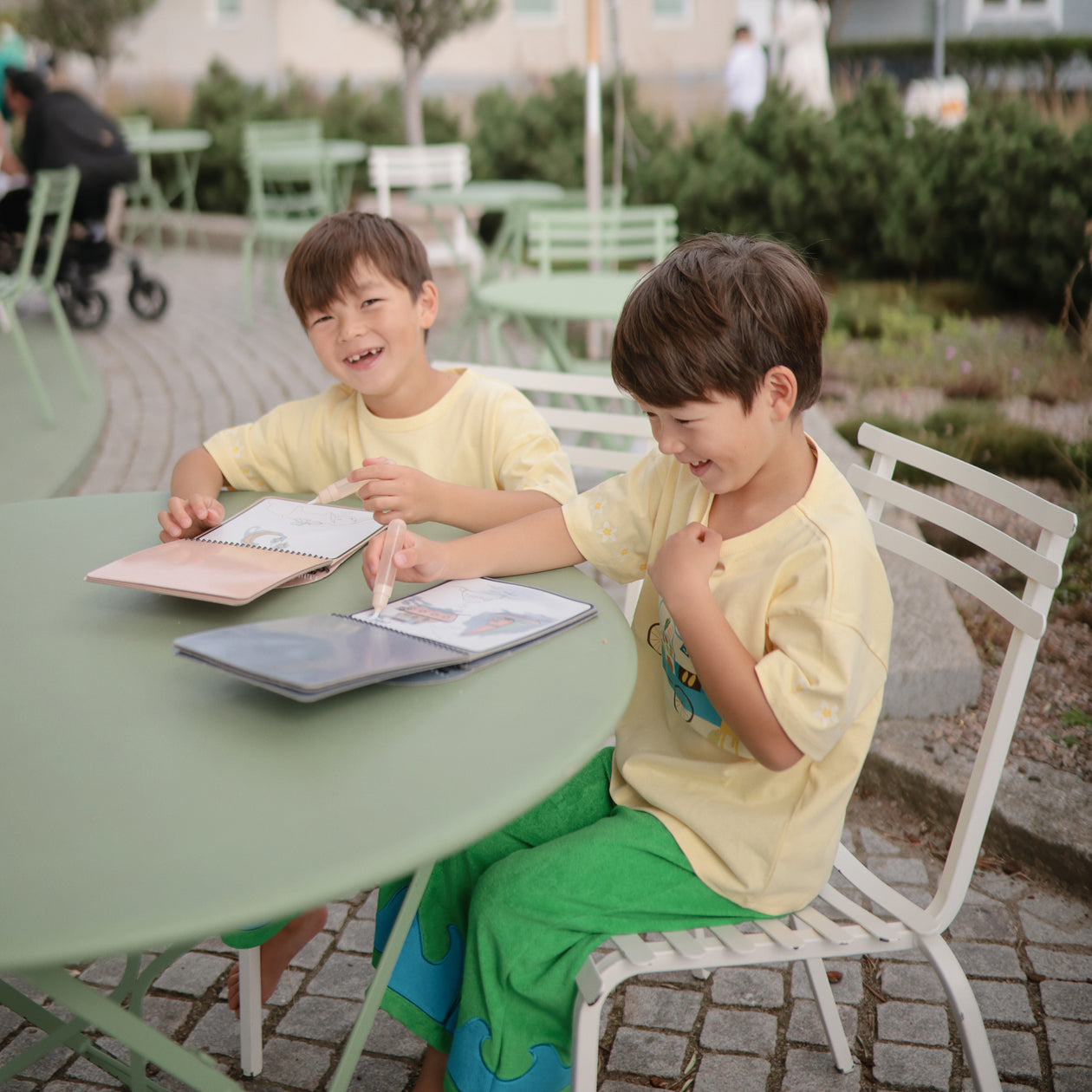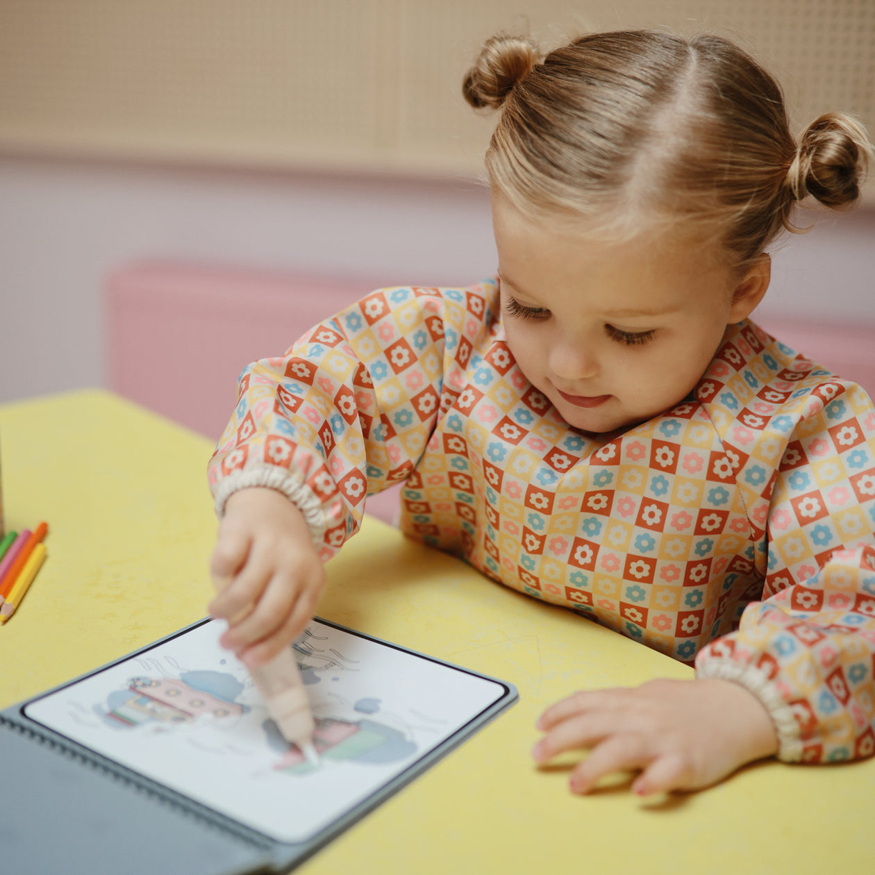 Bring creative play anywhere with Mushie’s Reusable Water Color Pad. Each set includes four full-color pages that magically reveal designs when brushed with water, then fade as they dry — ready to be used again and again. The included refillable brush makes painting simple, mess-free, and perfect for travel, quiet time, or on-the-go fun.