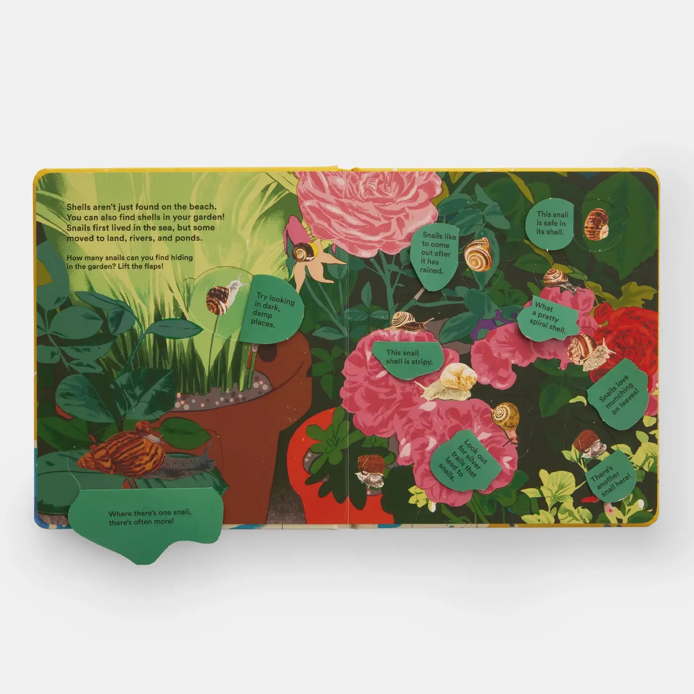 With over 40 flaps to lift creating interactive opportunities on every page, stunningly lifelike illustrations, children are encouraged to observe, engage with, and understand a range of shells and environments. From where shells are found and who lives in them, to what a shell’s look and feel can reveal about its inhabitant and environment. The book expands on a child’s natural instinct for collecting things, nurturing their interest and curiosity in nature by giving them simple observation skills that will help them to explore.