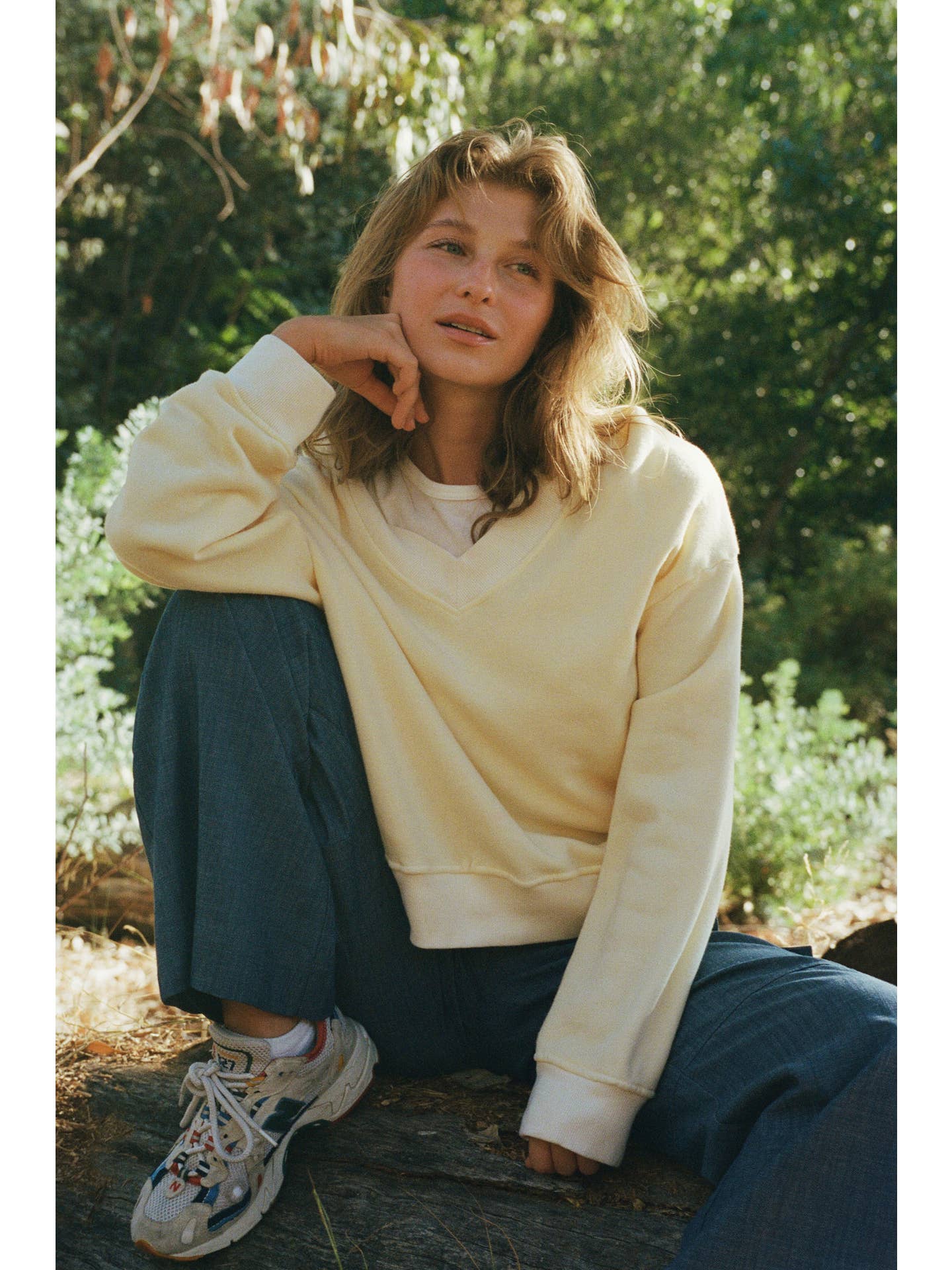 A perfectly cropped and slightly oversized v-neck sweatshirt, made of the softest cotton modal blended fleece. Accented with a chunky ribbed trim. Due to the enzyme wash, please allow for some subtle variations in the finish - this is an intentional part of the garment.