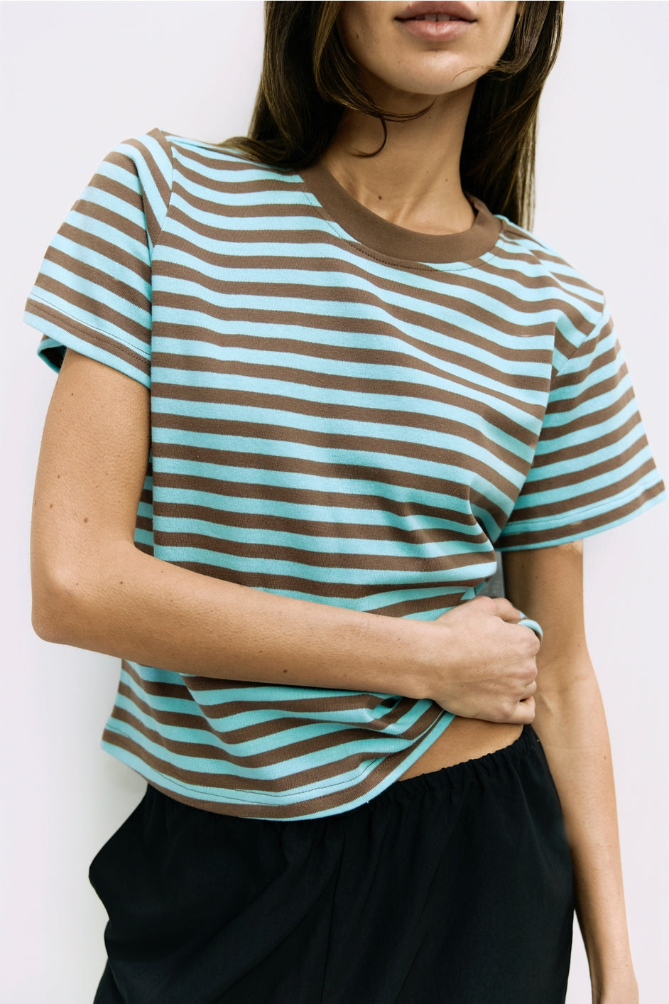 The Cooper Top is a relaxed-fit stripe tee with a crew neckline and short sleeves. Finished with a contrast ribbed band, it’s a casual and comfortable staple for any wardrobe.