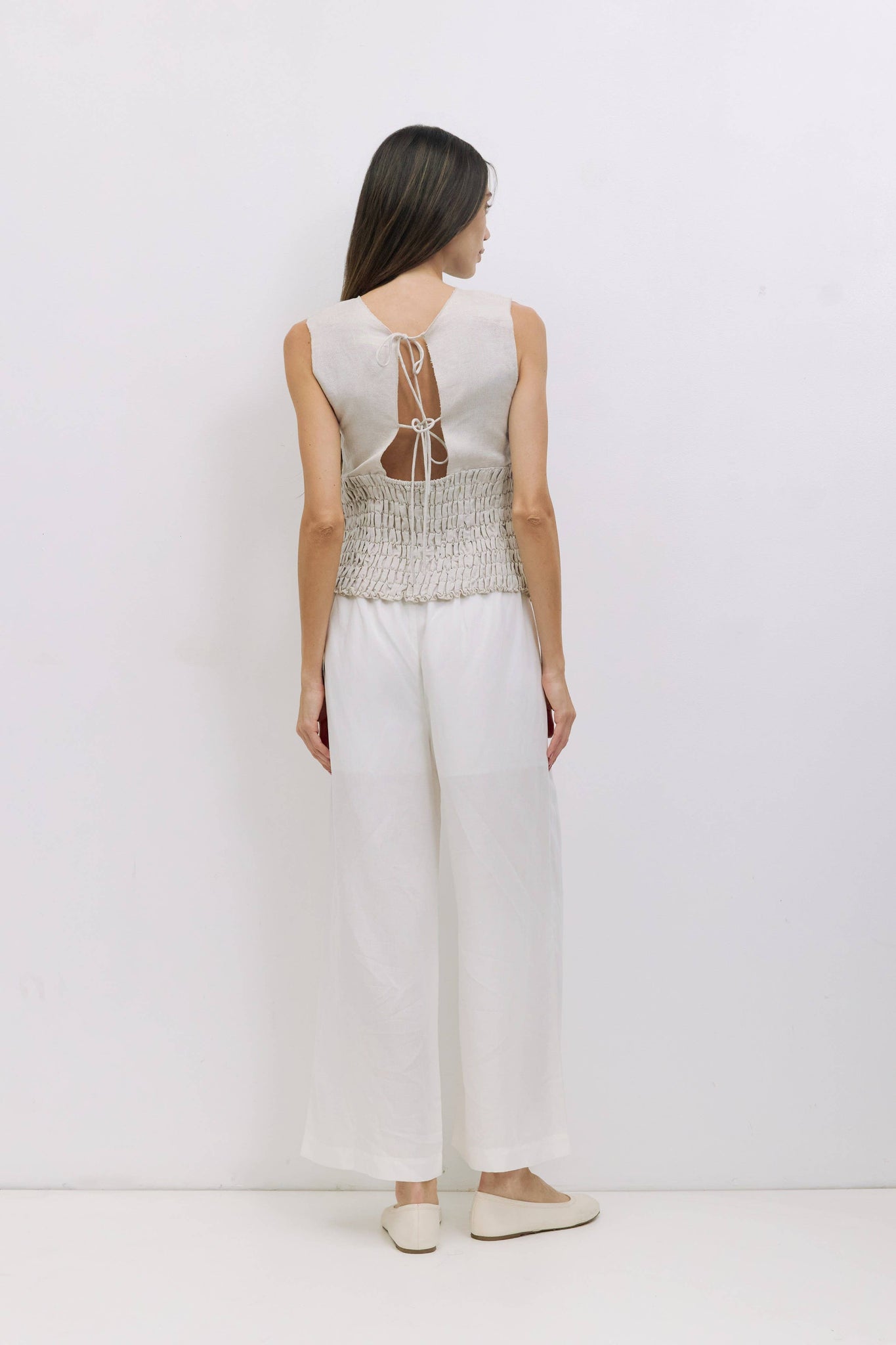 The Maven Top features midweight smocked fabric in a relaxed, sleeveless fit.